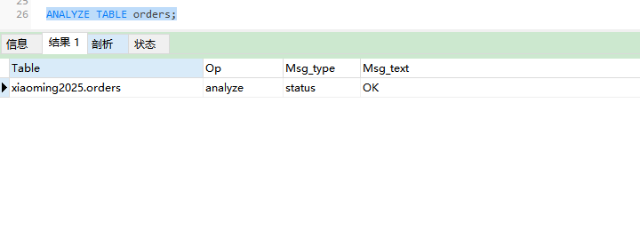 ANALYZE TABLE orders;