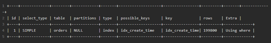 LIMIT 10;开启参数:possible_keys 显示 idx_create_time,Extra 显示 Using index condition; Using filesort