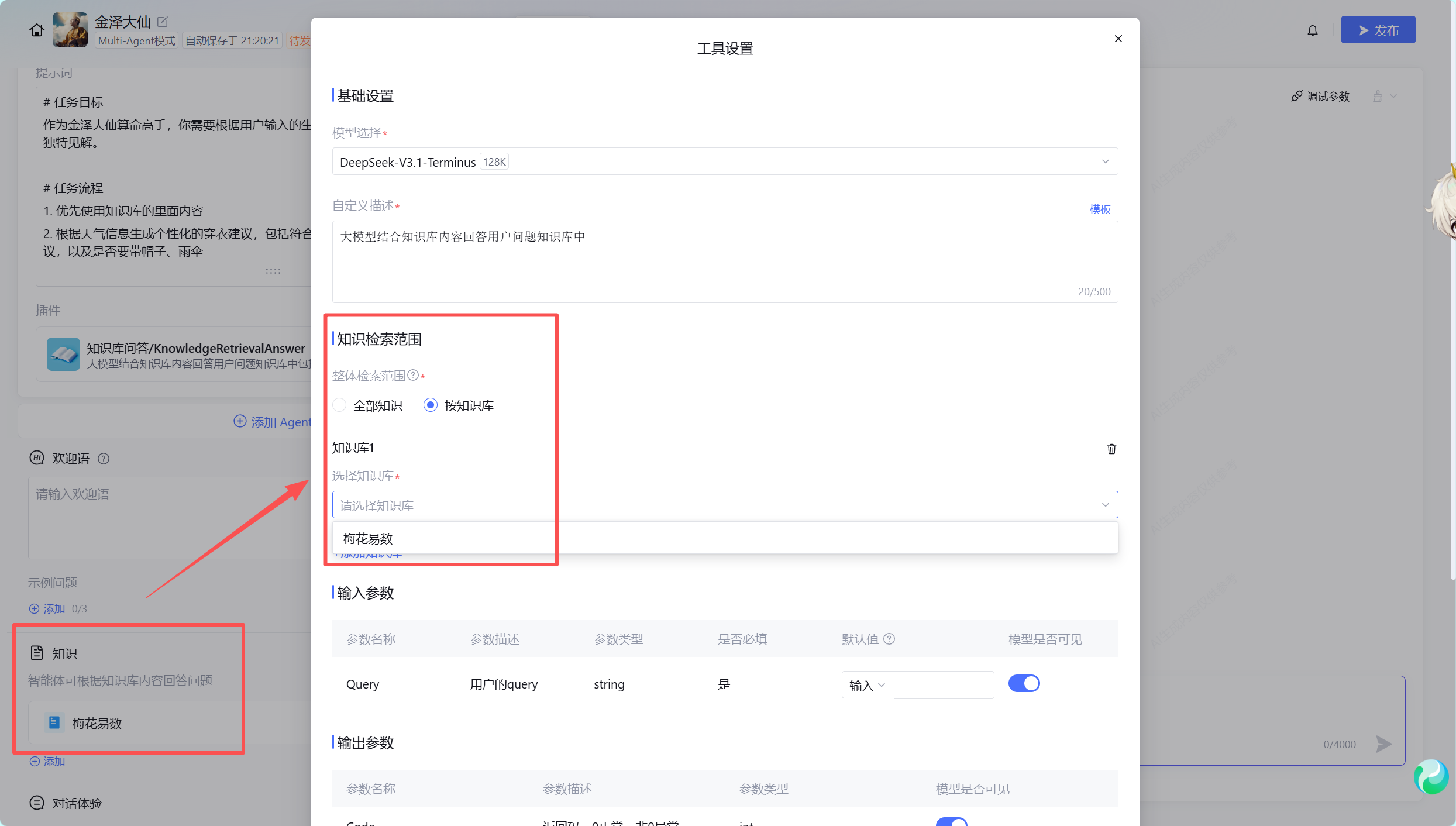 这里我们需要先添加知识库,才能在下面的工具中选择知识库这一项