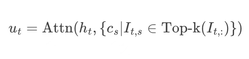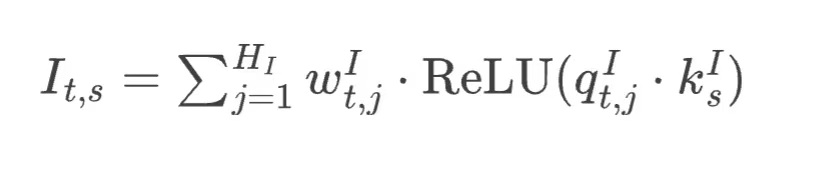 第一级是Lightning Indexer(闪电索引器)。对于每个query token 和历史token ,索引器计算一个相关性分数: