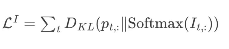 Dense Warm-up阶段:冻结主模型参数,只训练索引器。对于每个query token,计算原始多头注意力在所有历史token上的score分布,然后用KL散度让索引器的输出逼近这个分布: