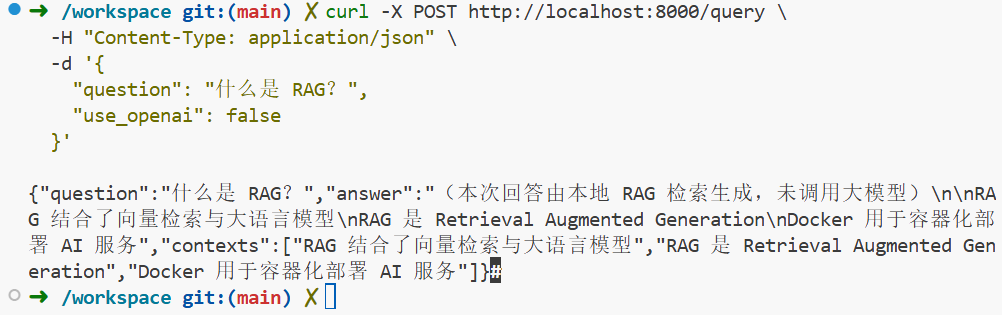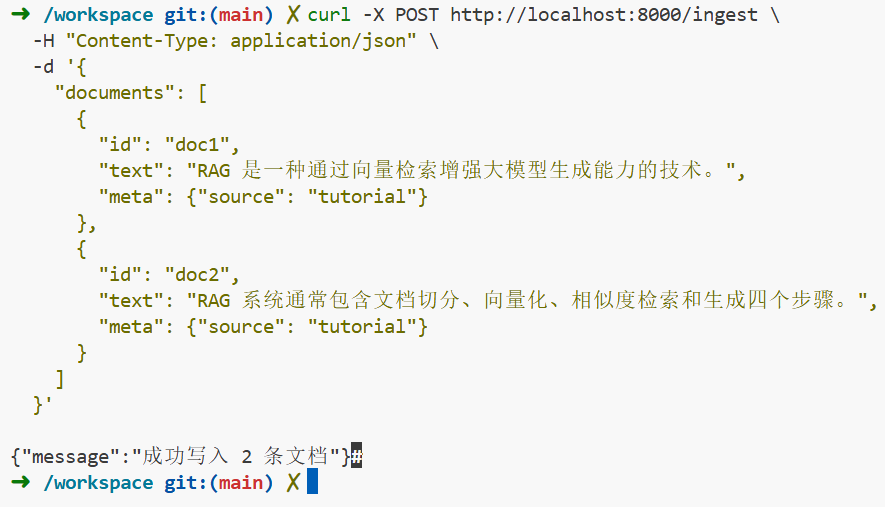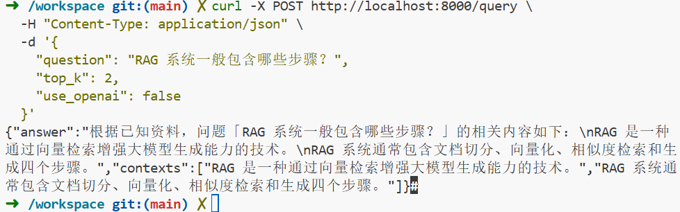 如果你看到 contexts 里是你刚刚 ingest 的内容 那么恭喜你:RAG 核心链路 100% 打通