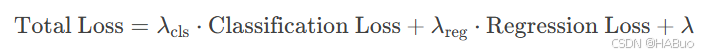 总损失函数:YOLOv8 的总损失函数是分类损失、回归损失和对象性损失的加权和: 其中: