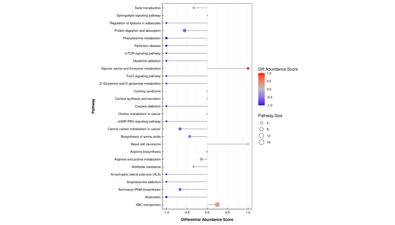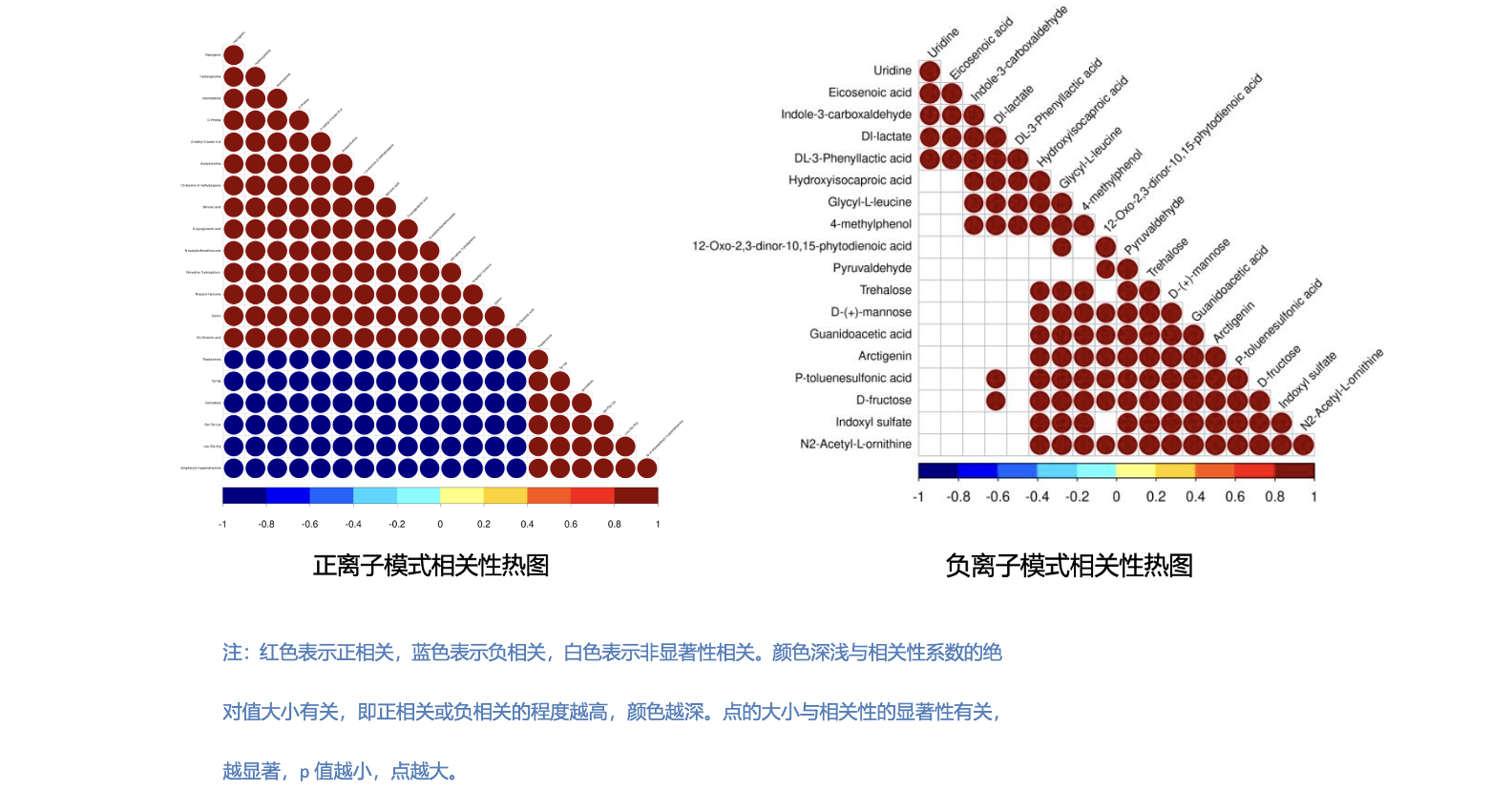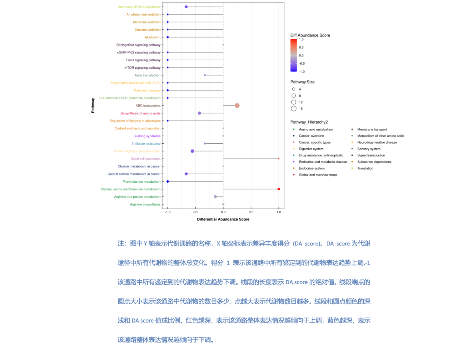 1.代谢组学概述 代谢组学(metabolomics)诞生于上个世纪末,是一门研究生命体对外界刺激、病理生理变化以及本身基因突变而引起的分子质量小于 1500Da 以内的代谢产物(内源性代谢物)种类、数量及其变化规律的科学。 代谢组学是继基因组学、转录组学、蛋白质组学后出现的新兴“组学“,是转录组学和蛋白质组学的延伸,能够更直接、更准确地反映生物体的生理状态,是系统生物学的重要组成部分。 系统生物学中,基因组学告诉你可能发生什么,蛋白组学告诉你正在发生什么,而代谢组学是最接近表型的组学,告诉你已经发生了什么。 目前代谢组学广泛应用于各研究领域。 通过代谢组技术分析实验组与对照组的代谢水平差异,找出差异代谢物,有助于生物标志物的筛选,或研究差异代谢物参与的生物过程(通过代谢通路逆推找出调节酶和基因),揭示其参与的生命活动机制,完成调控通路等方面的研究。 从检测方式上,代谢组学主要分为非靶向分析(untargeted)和靶向分析(targeted)两类。其中,非靶向分析模式通常是建立在高分辨质谱仪上(triple TOF 或 QE 系列等),依赖其强大的高分辨率质量分析器,能够对样本中的各类代谢物进行无偏向、大规模、系统性的检测,提供的是"航拍"的视角,最大程度反映生物体内的代谢水平扰动情况,因此适合项目前期的基础研究;而靶向分析模式通常是建立在单位质量分辨率的质谱仪上(Q-Trap、QQQ 等),依赖于三重四极杆串级质谱的高选择能力及高灵敏度,使用针对性开发的样品制备及色谱分离方法,对感兴趣的目标代谢物进行选择性、特异性的检测,适用于特定关注的代谢物检分析及对非靶代谢组筛选到的差异代谢物进行验证。 2.代谢物鉴定 2.1 代谢物鉴定等级 不同于转录组、蛋白组学技术,代谢组学技术发展最晚,研究的代谢物种类繁多,存在大量同分异构体及分子质量接近的代谢物,导致目前代谢物的准确鉴定都是一大难点和挑战 最新的代谢物鉴定等级分为5级,从level 0 到5,数字越大,可靠性等级越低(之前为4)。一般代谢物鉴定等级在2以上为可靠结果等级 0,具有明确的三维结构和立体化学信息 等级 1,可靠的二维结构鉴定,至少需要将真实化学标准品的两个或多个正交性质(如MS/MS 谱图、保留时间 RT 或碰撞截面(CCS)值)与在相同分析条件下分析的感兴趣代谢物的相同性质进行比较 等级 2 级或 3 级为假定的注释结果,通常仅基于一个或两个性质,依赖于与不同实验室收集的或用不同分析方法获得的数据进行比较,而不是在相同分析条件下与真实的化学标准进行直接比较。例如,匹配公共数据库 , 如 HMDB, MoNA, MassBank, METLIN 以及 NIST 等数据库中的 MS/MS 谱图,代谢物的鉴定等级定义为 Level 2 不能被鉴定为以上等级的为等级 4 未知物 2.2 代谢物鉴定数量统计 代谢物代谢组学测序区分正离子模式和负离子模式,如下图正负离子模式合并后鉴定 1334 种代谢物 问:代谢组学里面之所以要分正负离子模式?代谢组学里面之所以要分正负离子模式(Positive/Negative mode),是因为这是质谱仪(MS)在检测代谢物时的一种离子化方式。不同的代谢物在这两种模式下的表现不一样,所以需要两种模式配合使用,才能更全面、准确地检测出样本中的各种代谢物 代谢组学的核心方法是色谱-质谱联用(如LC-MS),它的过程主要是:色谱(LC) 先把样品里的代谢物分离开;质谱(MS) 再对这些代谢物进行检测和定性定量。在进入质谱分析前,代谢物要被“电离”成带电的离子,才能被质谱仪检测到。而不同的代谢物更容易形成正离子或负离子,所以就有了两种离子化模式:正离子模式,检测到的离子类型为M+H⁺、M+Na⁺ 等正离子,适合检测的分子类型为含有胺类、碱性基团的代谢物,如多肽、脂质;负离子模式,检测到的离子类型为M-H⁻、M+Cl⁻ 等负离子,适合检测的分子类型为含有羧酸、酚羟基、酸性基团的代谢物,如有机酸、某些糖类 正负离子模式是质谱对不同类型代谢物的“扫描方式”,两者互补,能更全面检测所有代谢物。 问:蛋白质组学也用到了质谱技术,为什么蛋白质组学中不用正负离子离子模式?蛋白质或肽段在正离子模式下更容易形成多电荷正离子(multiply charged ions),这对于提高质谱分辨率和MS/MS碎片分析很重要。负离子模式对多肽来说电离效率差、不稳定、信号弱,不利于后续识别。 问:正负离子模式是否能检测到同一个代谢物?如果两个模式都检测到了同一个代谢物,表达量有差异怎么办?同一种代谢物可能会被两个离子模式同时检测到,但因为电离效率、响应因子不同,表达量出现差异是正常的。在分析时通常会选择信号质量更好的一项作为代表,避免重复或干扰统计结论。 后续分析中什么时候区分正负离子模式,什么时候不区分?在后续的PCA、OPLS-DA、差异分析火山图中都需要分为正负离子模式 后续得到的差异代谢物需要合并在一起进行富集分析 3. 组间差异分析 单变量统计分析是从某单一变量水平考察组内变异度和组间差异,而多维统计分析是从总体水平反映组间差异以及反映组内的变异度。 代谢组数据具有高维度且变量间高度相关的特点,运用传统的单变量分析无法快速准确地挖掘数据内潜在的信息, 所以需要运用多元统计的方法,如 PCA、OPLS-DA 分析等分析,在最大程度保留原始信息的基础上对采集的多维数据进行降维分析。即因为代谢物之间相互关联,所以需