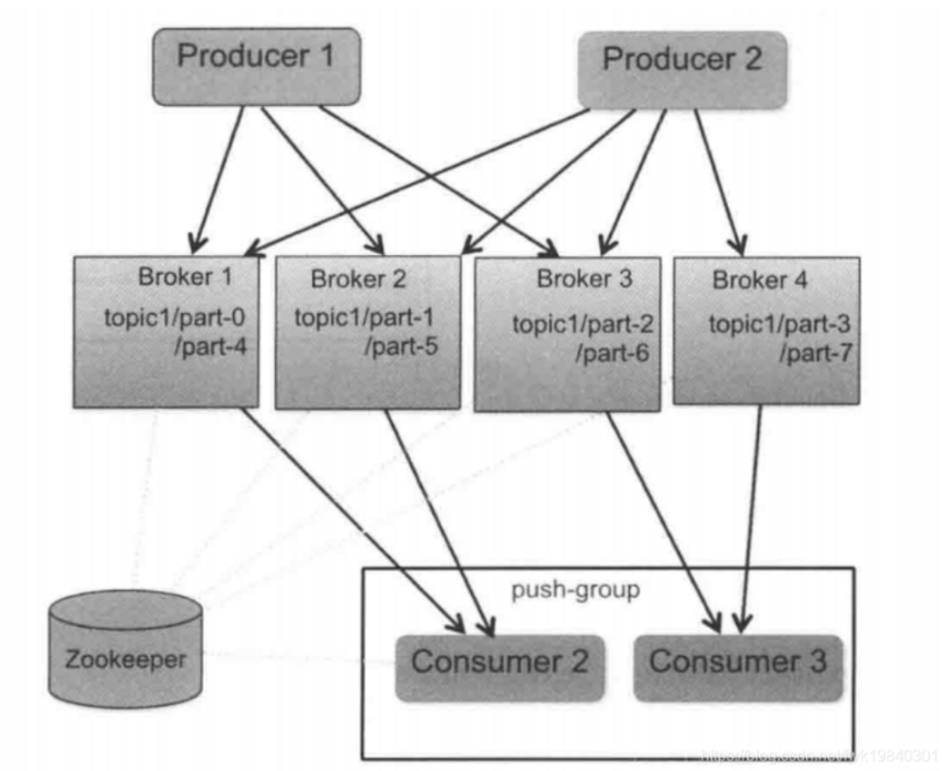- kafka:采用zookeeper对集群中的broker、consumer进行管理,可以注册topic到zookeeper上,通过zookeeper的协调机制,producer保存对应的topic的broker信息,可以随机或者轮询发送到broker上,producer可以基于语义指定分片,消息发送到broker的某个分片上。即如果不指定分片,就会默认存到master的分片上,然后再同步到其他的分片