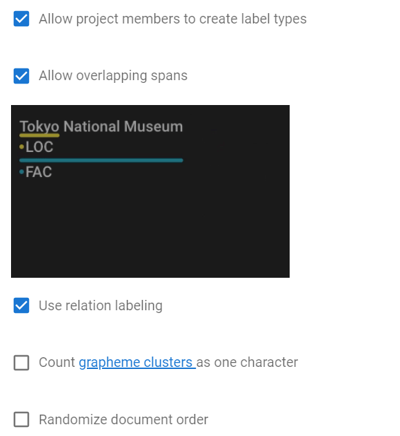 Sequence Labeling)Project name)等必要信息Allow overlapping entity)、使用关系标注(Use relation labeling)