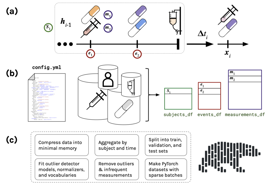 本文提供了一个软件工具,将 GPT 的适用范围扩展到具有内部依赖关系的复杂事件的连续时间序列,作者引入了 Event Stream GPT(ESGPT),这是一个开源库,旨在简化为连续时间事件序列构建 GPT 的端到端流程。ESGPT 允许用户:(1)只需指定一个最小配置文件,即可构建灵活的、基础模型规模的输入数据集;(2)利用与 Hugging Face 兼容的 GPT 建模 API,该 API 结合了事件内因果依赖结构和自回归生成能力;(3)通过标准化流程评估模型,能够评估预训练模型在用户指定的微调任务上的少样本甚至零样本性能。