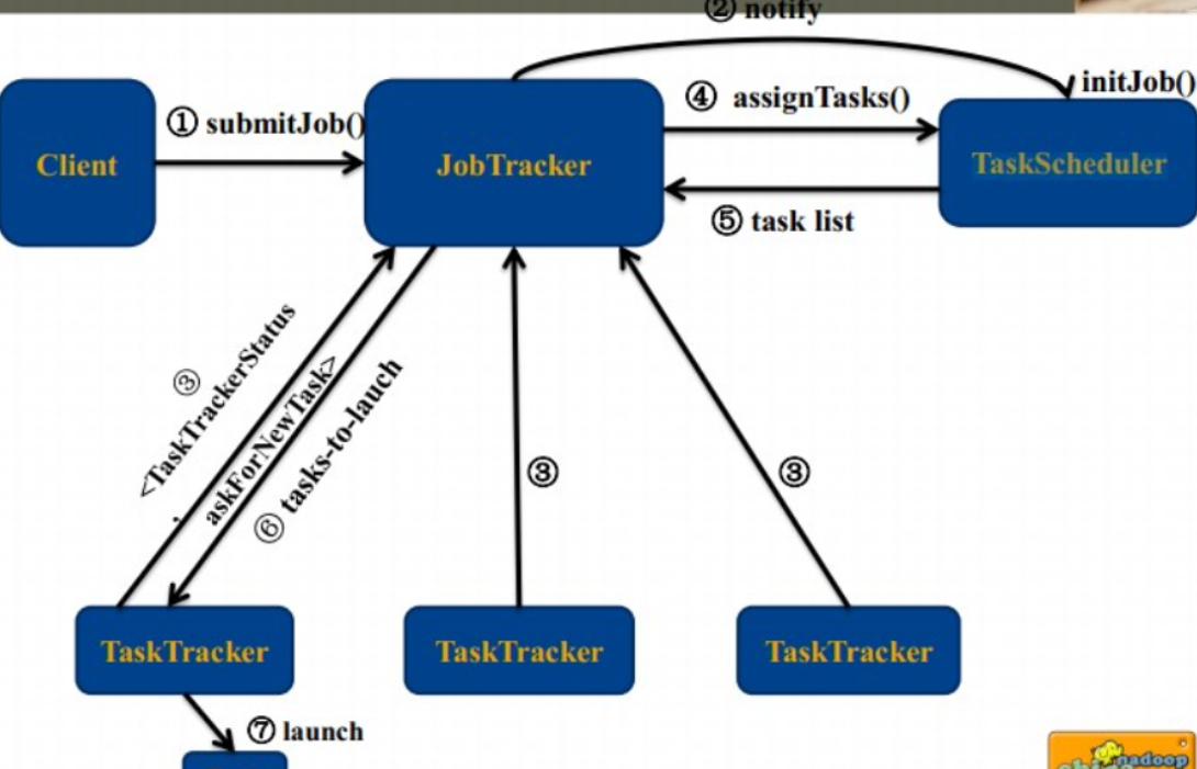 可以看得出JobTracker相当于是一个资源管理调度器,必然要面对大量的任务处理。而且出现错误集群必然崩溃。