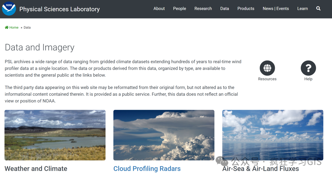 Physical Sciences Laboratory(PSL)是美国国家海洋和大气管理局下属数据平台,具有非常丰富的全球或地区气候、水文、天气等数据。如下图所示。