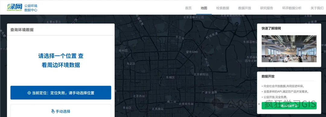 绿网是我国一家致力于污染防治的非营利性环保组织下属环境质量数据网站。其具有空气质量、水质量、环境风险企业、土壤、环境影响评价、保护区等数据,可以在网站地图中实时显示或通过其API端口下载。如下图所示。