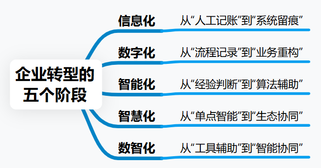 会议室的白板上,总能看到“信息化、数字化、智能化、智慧化、数智化”这几个词。