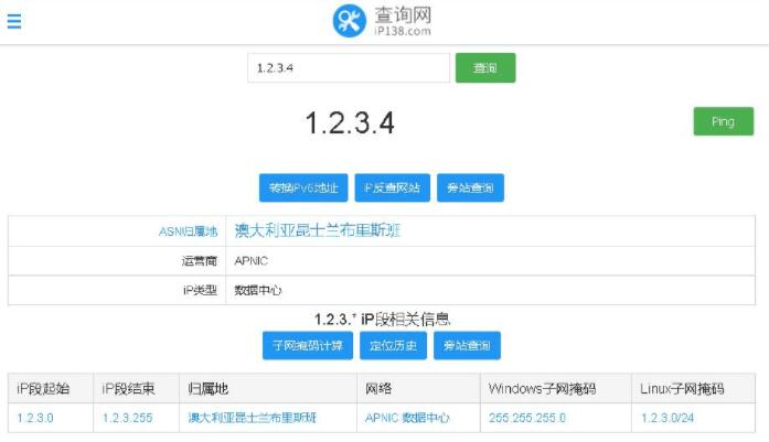 除了查询公网IP外,有时我们还需要了解IP地址的归属地信息。