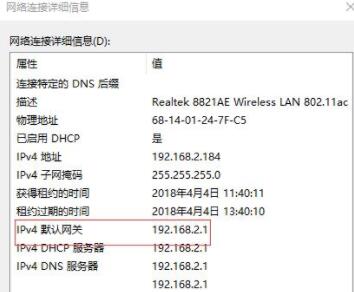 (4)我们便可以看到默认网关地址,也就是路由内网IP地址了。