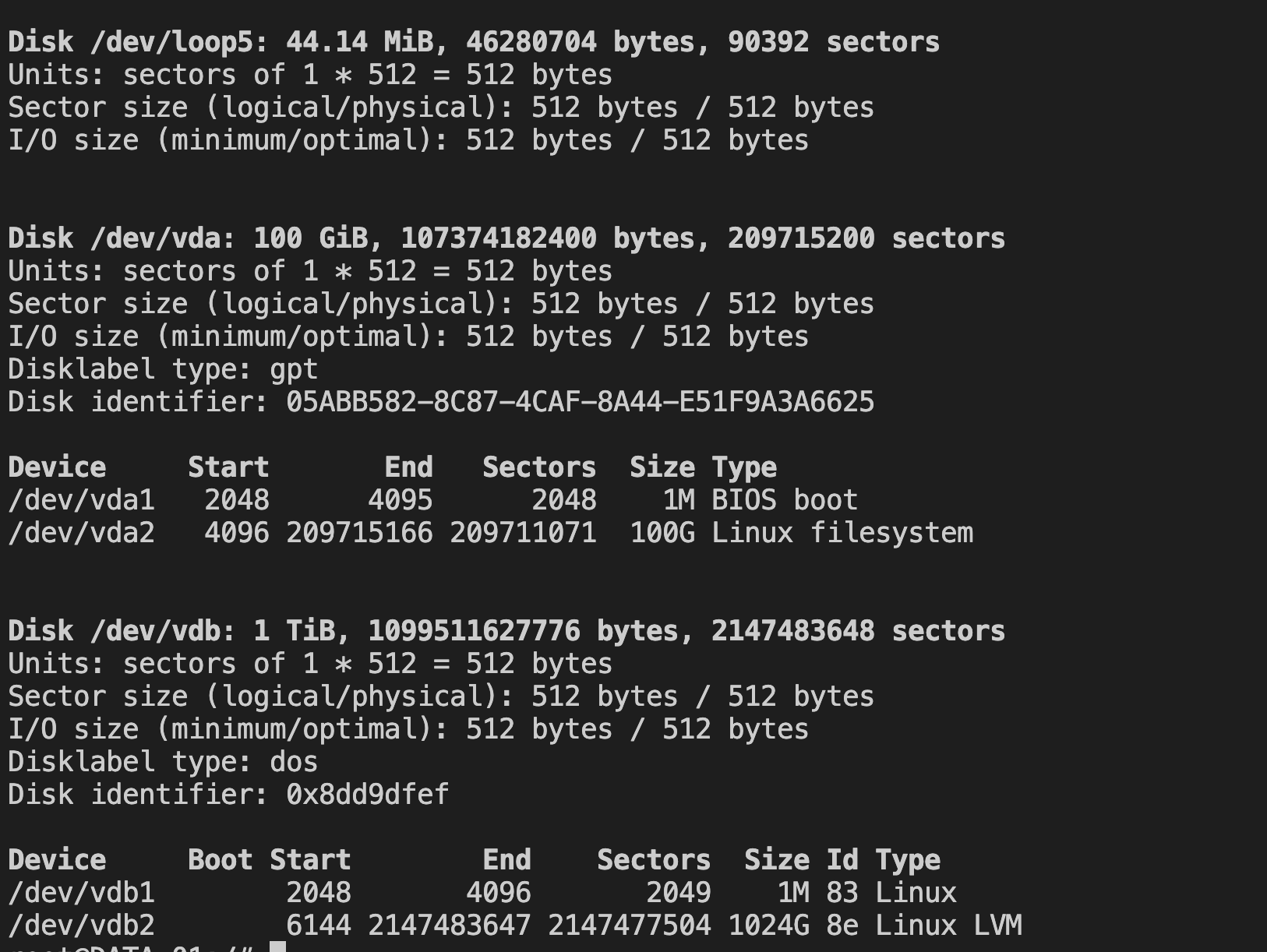 mount /dev/vdb /mnt/dataparted支持 GPT(GUID 分区表),适合大于2TB的磁盘。它的功能比fdisk更强大,支持更多的文件系统类型。