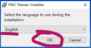 在服务器端下载好 VNC Server,然后双击程序进行安装,首先也是进入安装语言选择界面,选择默认语言 English 即可,然乎单击下方 OK 进入下一步。