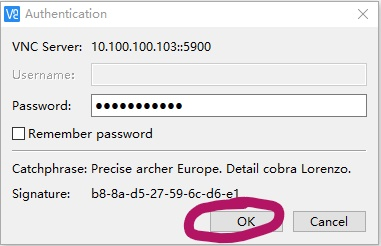 2)、VNC Server传送一对话窗口至客户端,要求输入连接密码,以及存取的VNC Server显示装置。