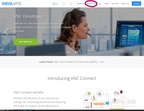 首先在浏览器中输入网址 www-realvnc-com,打开RealVNC官网首页如下,界面比较简单,这里就不进行详细说明了,有兴趣的可以自己慢慢去了解。