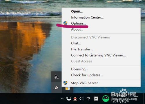 这些设置都可以自定义更改,你可以再桌面右下角的系统托盘里找到它,右键在弹出的系统设置项里选择 Options 进入系统设置,进行详细系统选项设置,简单的设置将在下一节讲解。