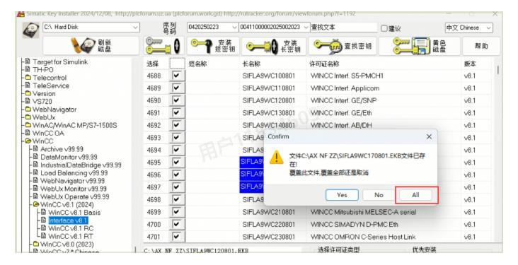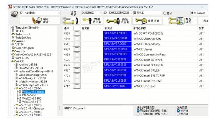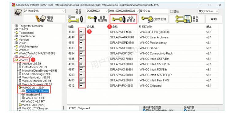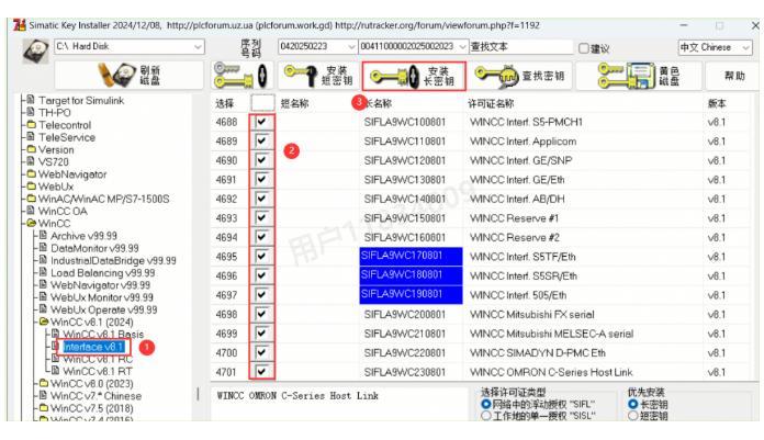 32、点击【WinCC v8.1(2024)】,找到并勾选【4630】短名称,然后点击【安装长密钥】(这步非常关键,决定软件能否正常使用!)