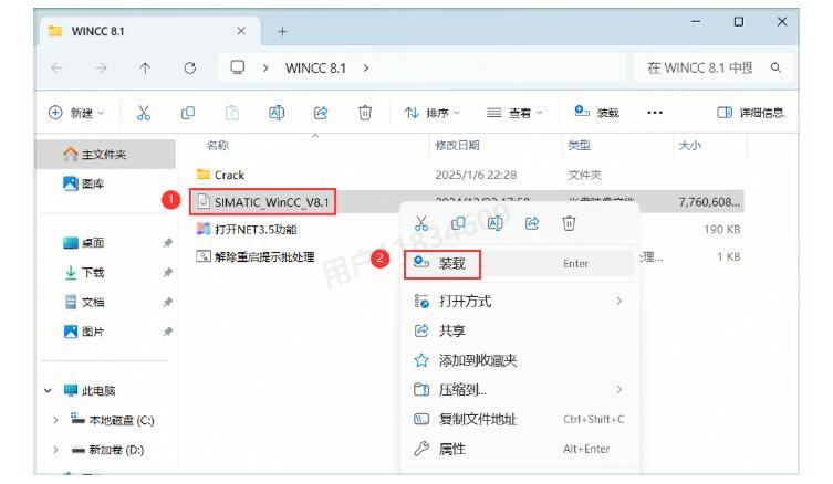 5、现在找到【SIMATIC_WinCC_V8.1】文件,右键点击选择【装载】选项,准备进入正式安装流程