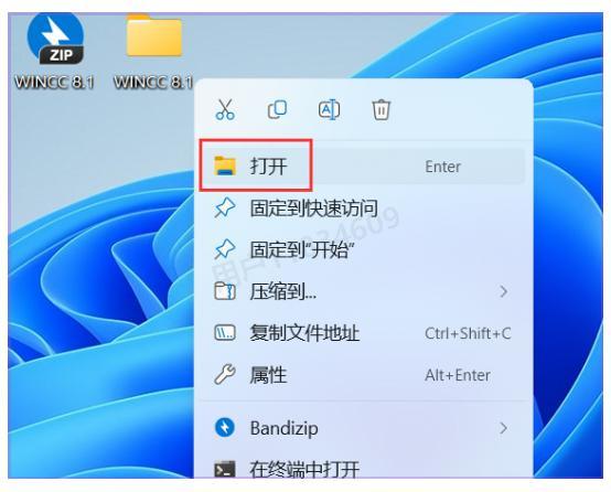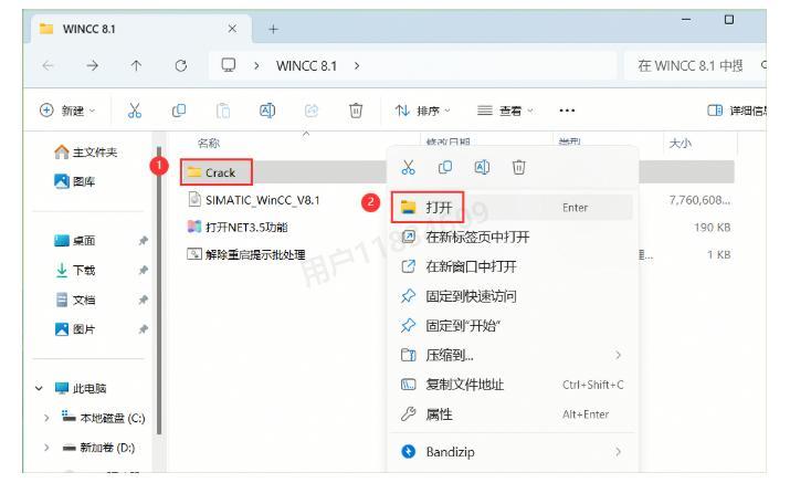 20、返回到WinCC 8.1文件夹,找到【Crack】文件夹,右键点击【打开】(这一步是为了完成软件的授权配置)