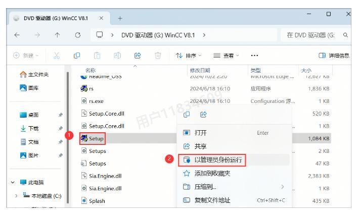 6、在打开的文件夹中,找到【Setup】应用程序,右键选择【以管理员身份运行】(这步必须用管理员权限,否则可能安装失败!)