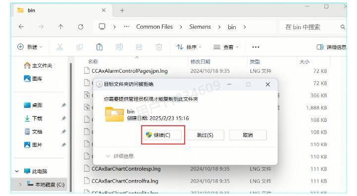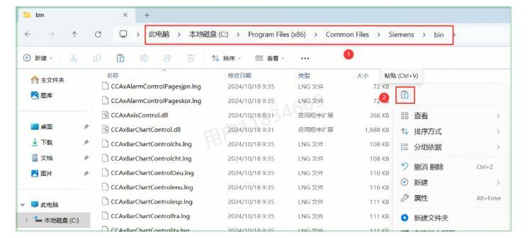 22、打开以下路径:C:\Program Files (x86)\Common Files\Siemens\Bin,然后在空白处右键点击选择【粘贴】选项