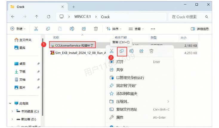 21、在Crack文件夹中,找到【CCLicenseService和谐补丁】程序,右键点击选择【复制】