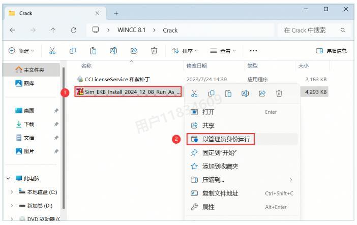 27、回到Crack文件夹,找到【Sim_EKB_Install...】程序,右键选择【以管理员身份运行】,准备安装授权密钥