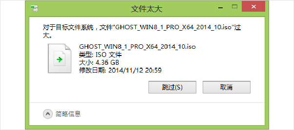不过,FAT32 有个明显的缺点,即单个文件大小不能超过 4GB。这意味着,当你想拷贝一部容量大于 4GB 的高清蓝光电影或者大型数据库文件到 U 盘时,就会收到FAT32系统的 “拒绝” 提示,所以大文件传输就不要选择FAT32格式了。