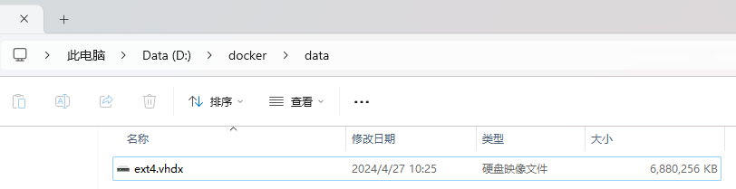 docker-desktop-data为要导入的实例的名称,不可修改D:docker\data 新的位置要导入的文件夹D:docker\docker-desktop-data.tar 之前导出备份的实例导入之后,进入资源管理器对应文件夹中,可观察到已经迁移成功