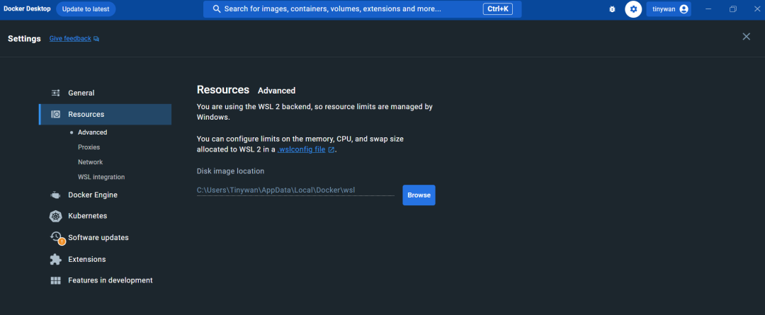Docker Desktop 默认将镜像文件存储在C盘,随着Docker的使用,镜像文件大小的不断增加,可能会导致C盘空间不足。为了解决这个问题,可以采取以下步骤更改Docker镜像的存储位置。