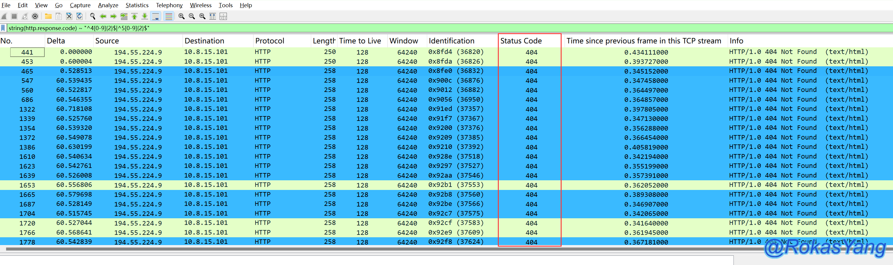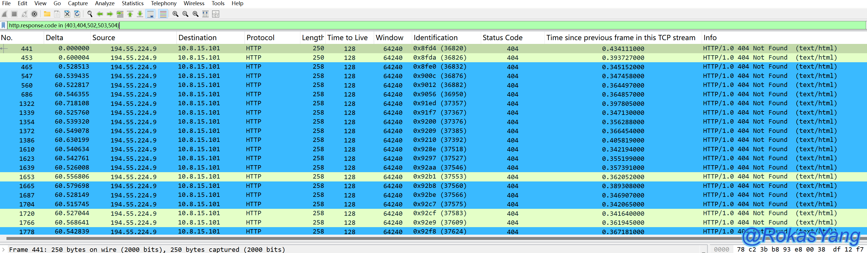 如果是HTTPS/TLS加密后的报文想过滤状态码,使用此方法则不行,因为数据已经被加密了在tls握手后看不到任何明文字段,除非解密后去过滤对应字段,如何解密可以参考这篇文章。