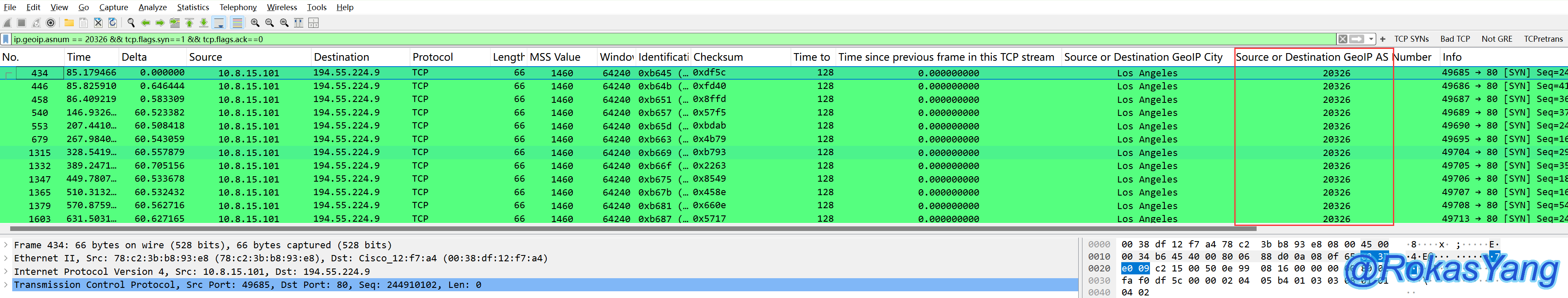 ip.geoip.asnum == 20326 && tcp.flags.syn==1