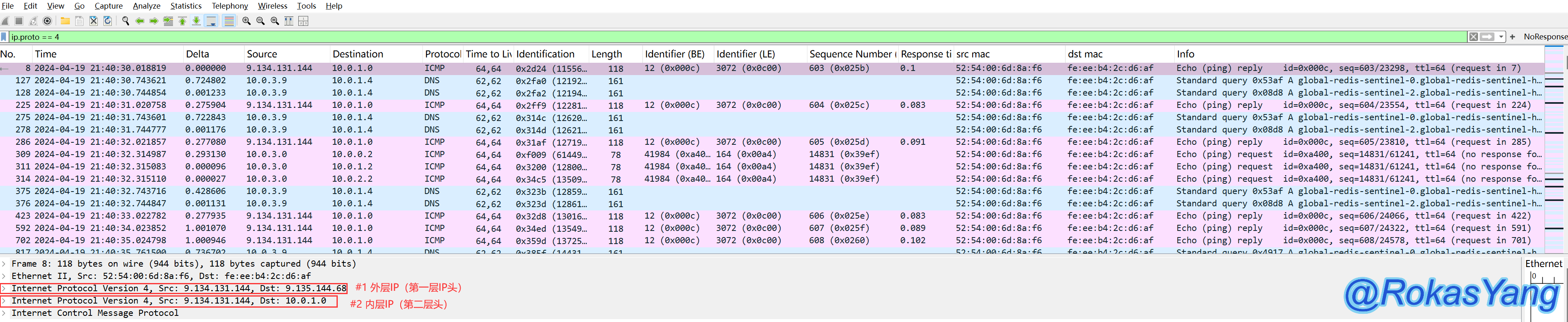 比如下面这个VXLAN的封包,通过UDP封装了内层IP头,再加上报文本身自带的IP头,因此出现了内、外两层: