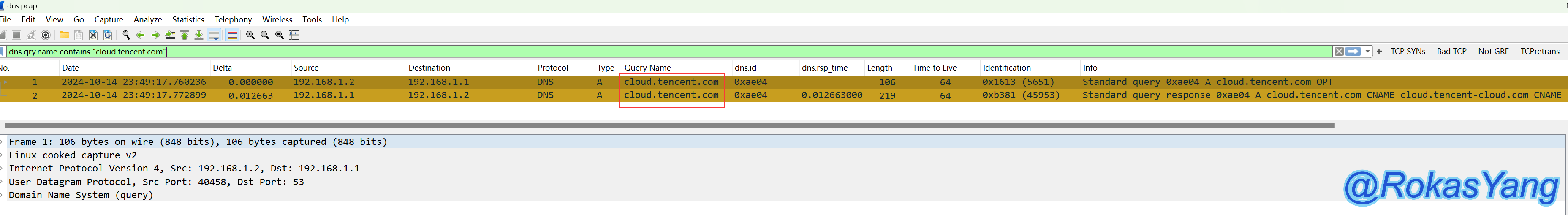 过滤dns查询请求包含cloud.tencent.com的可以是: