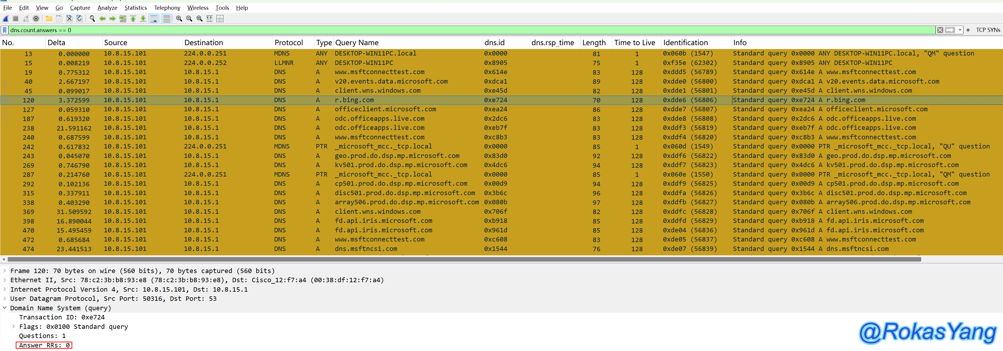 dns.count.answers == 0这些请求都没有解析到地址,返回的记录数量为0: