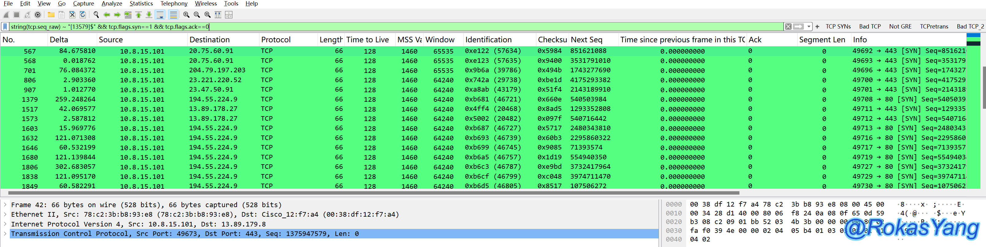 而如果我们只是简单粗暴的过滤syn为1并且ack等于0的报文: