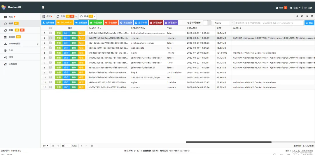 DockerUI 是一个易于使用且轻量级的Docker管理工具。通过Web界面的操作,可以更方便地让不熟悉Docker指令的用户更快地进入Docker世界。DockerUI覆盖了Docker CLI命令行的95%以上的命令功能。通过DockerUI界面提供的可视化操作功能,可以轻松执行Docker环境和Docker Swarm群集环境的管理和维护功能。
