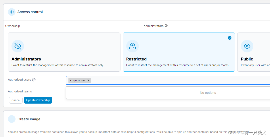 还可以创建新用户,并给容器指定用户权限。在容器详情中: