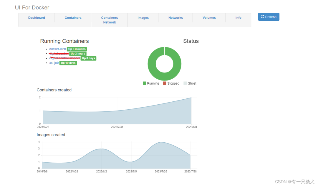 Docker UI 是一款最简单的,单机环境中的管理 Docker 的图形工具,适合初学者和小型 Docker 管理。