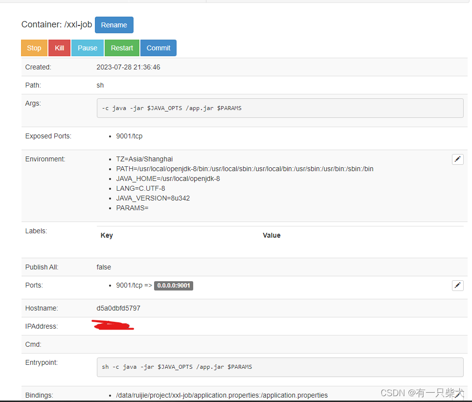 点击容器如 xxl-job 详情: