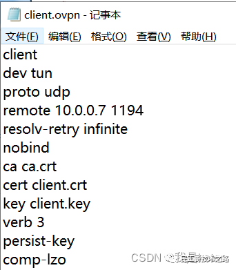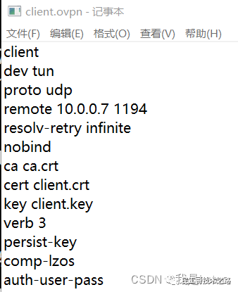 remote 10.0.0.7 1194 #注意此处更改为openvpn服务端代码