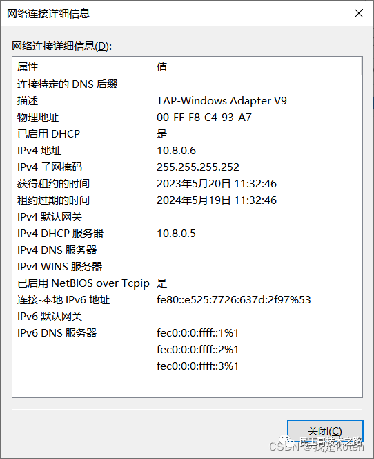 右键,状态,详细信息,可以看到ipv4地址是10.8.0.6是我们配置的那个段的地址。