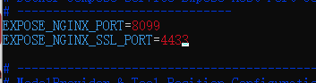 修改.env文件下,Nginx的默认端口号。80改成8099,443改成4433等非默认端口,防止冲突。