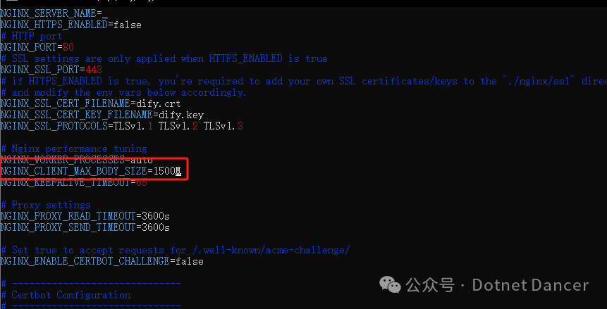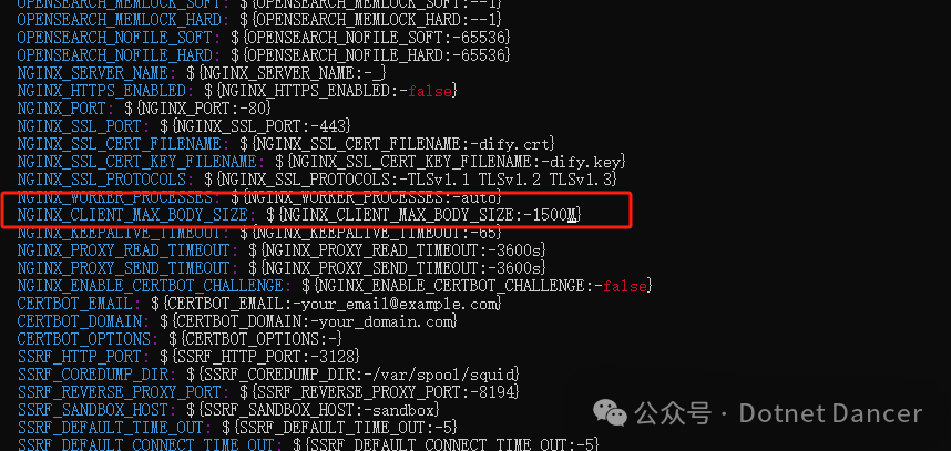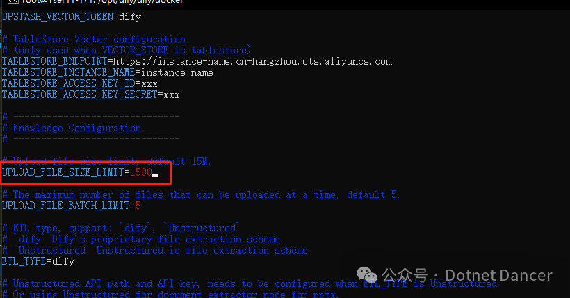 Dify默认上传文件限制大小15MB,可以在.env里面进行修改配置