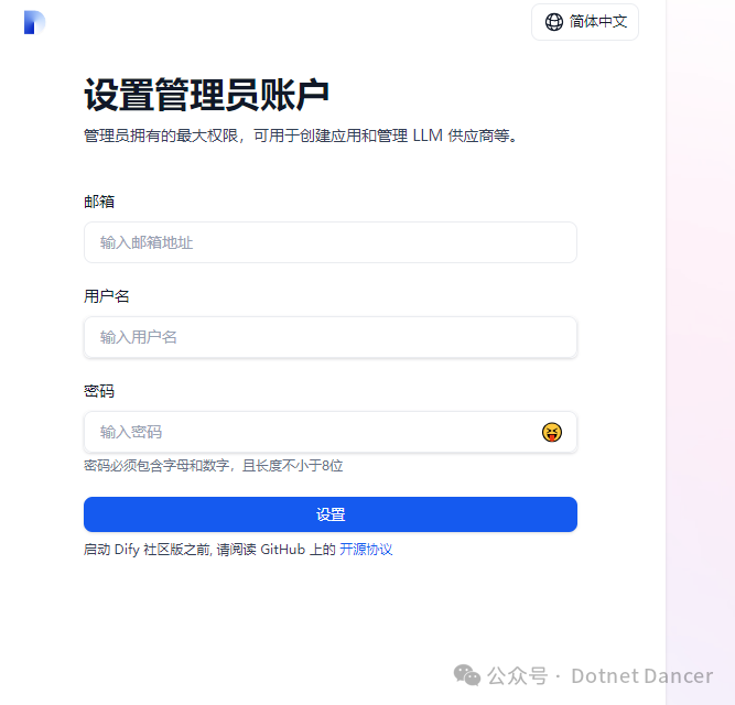 设置账户以后,就可以正常进入Dify了
