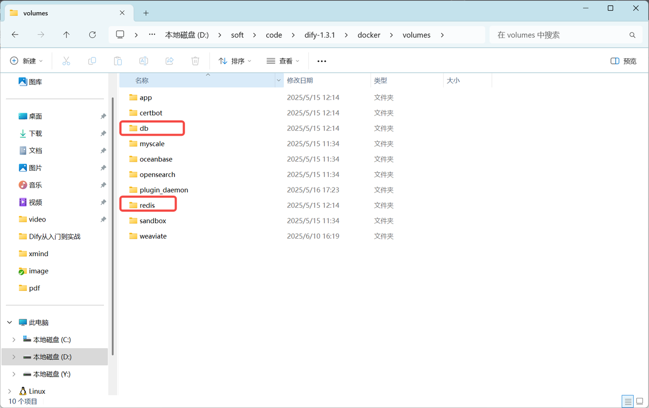 数据备份:进入原安装包 docker 目录,备份“volumes”文件夹,此文件夹包含了 Dify 数据库数据: