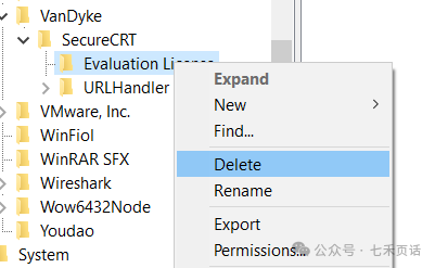 那么如何无限期续30天呢?就是要删除注册表里Securecrt的“Evaluation License”。