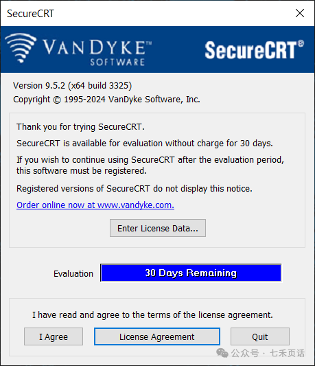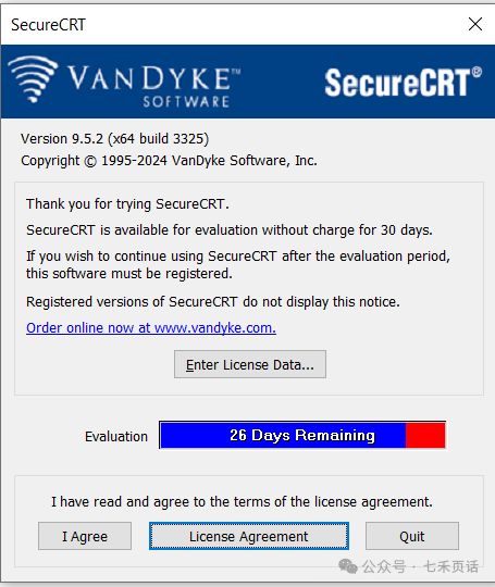 首先可以从官网下载并安装最新版本的SecureCRT 9.5.2,使用起来后就开始倒计时了: